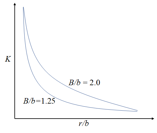 이 때 $K$는 응력 집중 계수이고 이것은 응력 집중에 의한 최대 응력 $\sigma_{\text{max}}$와 응력 집중을 무시한 평균 응력인 $\sigma_{\text{nom}}$의 비율을 의미한다. 이때 nominal stress $\sigma_{\text{nom}}$은 단면적이 작은 부분의 응력을 말한다. 이 응력 집중 계수 $K$는 광탄성 측정을 이용해 만든 응력 집중 계수 선도를 이용해 찾는다. 그림 4와 같이 필릿(fillet)이 적용된 형상의 응력 집중 계수 선도는 그림 5처럼 되어 있다. 여러가지 선도는 설계 핸드북을 찾아보자. 사실 요즘은 완만하게 형상 설계를 하고 유한요소해석으로 응력 상태를 점검하지 선도를 찾아서 계산하는 경우는 잘 없다. 우리는 그저 응력 집중이 이렇게 일어나는구나 하고 이해하고 넘어가면 된다.