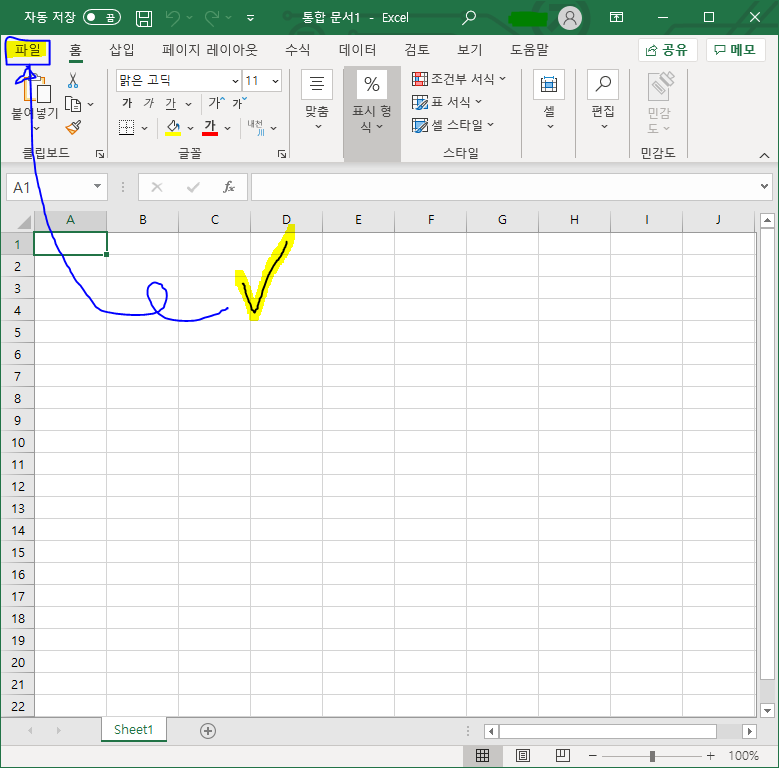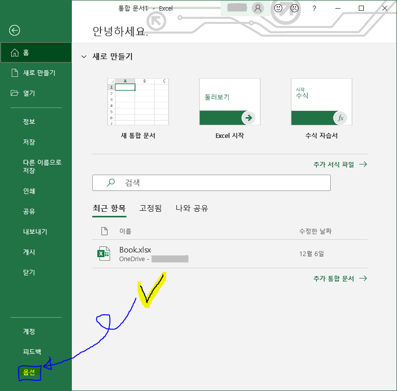 1.1. 메뉴바의 [파일] - [옵션] 클릭